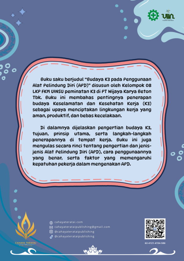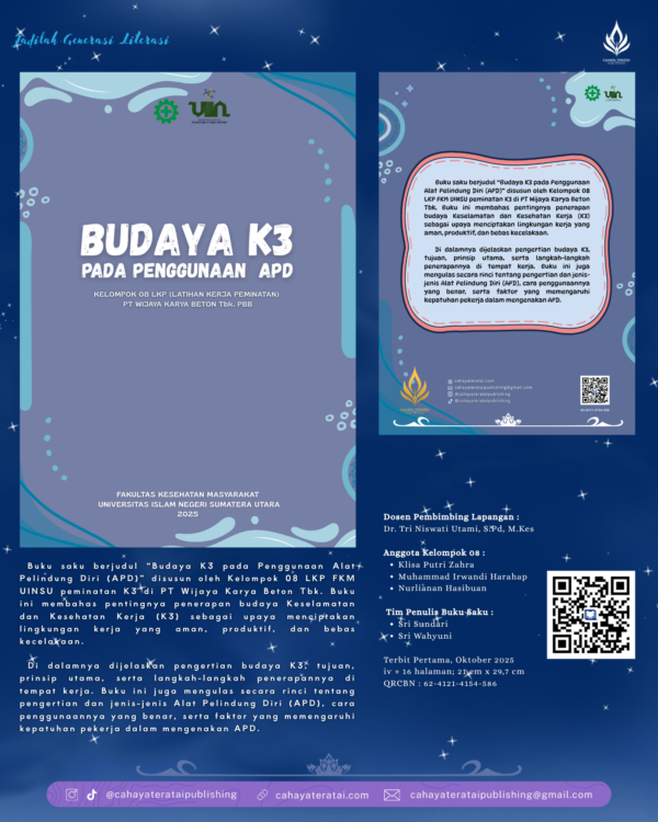 #BudayaK3 #KeselamatanKerja #APD #K3diTempatKerja #CahayaTerataiPublishing #UINSU #LiterasiKeselamatan #KerjaAmanKerjaNyaman #BukuSakuK3 #GenerasiPeduliK3